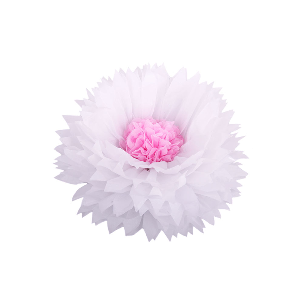 Бумажный цветок 30 см белый+розовый