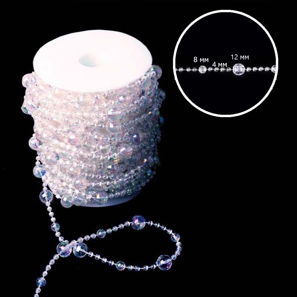 Акриловые бусины на шелковой нитке в рулоне.