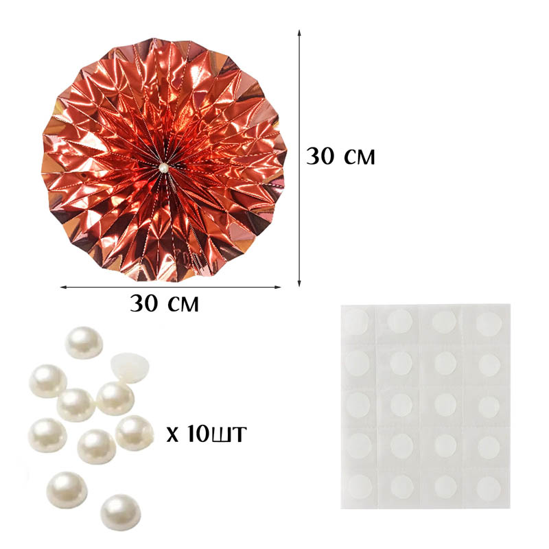 Фанты фольгированные с жемчужиной НАБОР 10шт х 30см, розовое золото