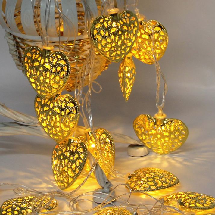 Гирлянда Сердца золотые 2 м 20 ламп от батареек