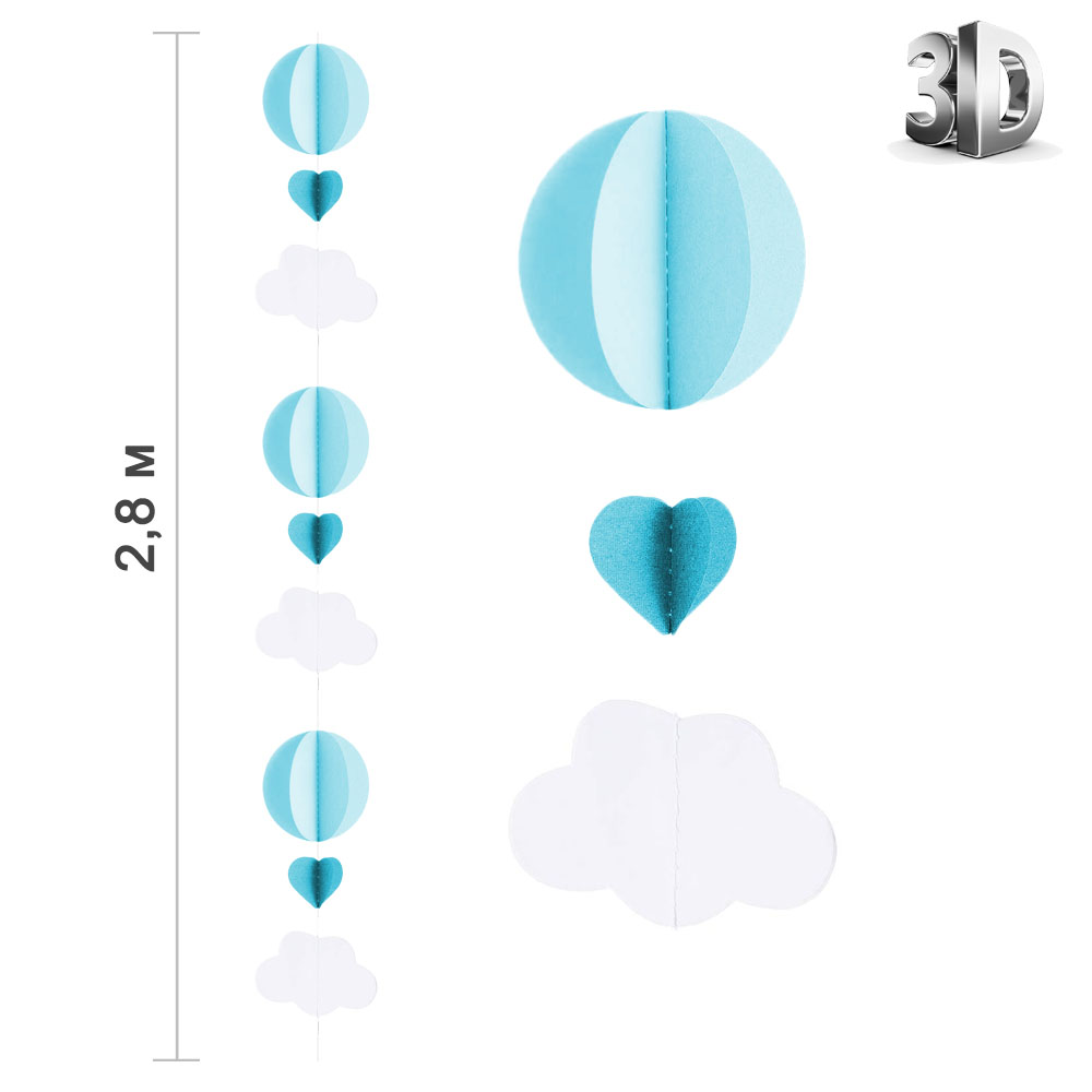 Гирлянда "Кружочки в облаках" 3D 2,8 м голубой