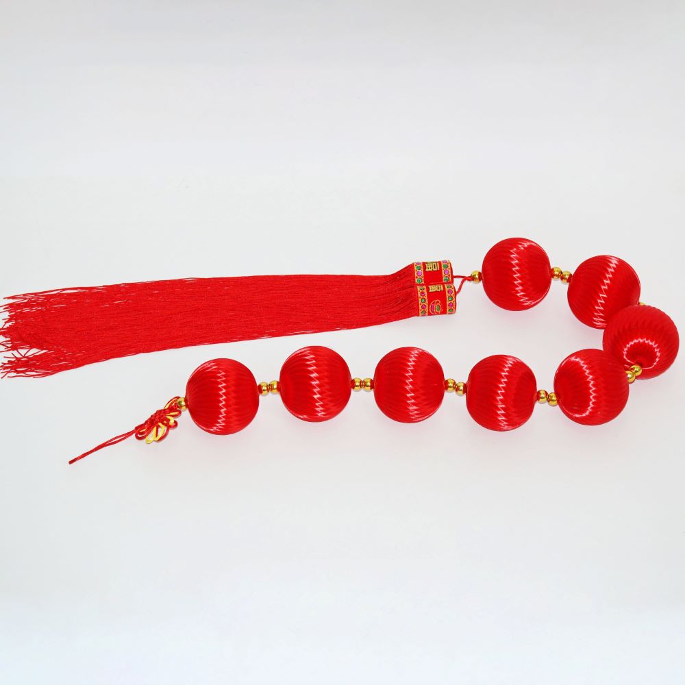 Коллекция подвесных шаров в традиционном китайском стиле. Легкие пластиковые шары плотно обвитые шелковыми нитями насыщенного красного цвета, создающими эффект мерцающего перелива при свете.