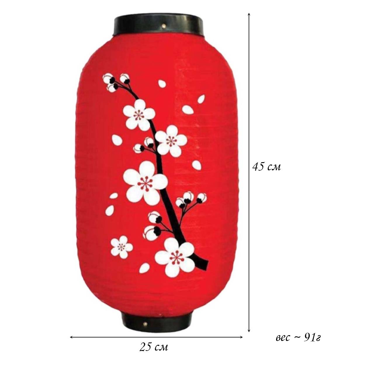 Китайский фонарь Цилиндр "Сакура" крупная 25х45 см, красный