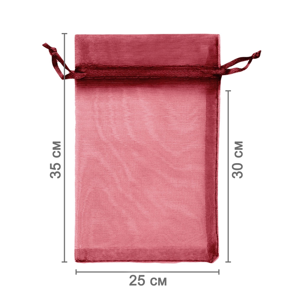 Мешочек из органзы 25 х 35 см — практичный аксессуар для упаковки крупных предметов и подарков. Лёгкая ткань подчёркивает содержимое и придаёт праздничный вид.
