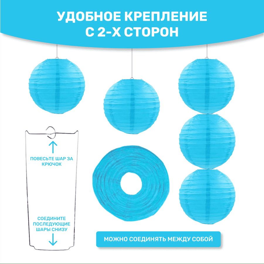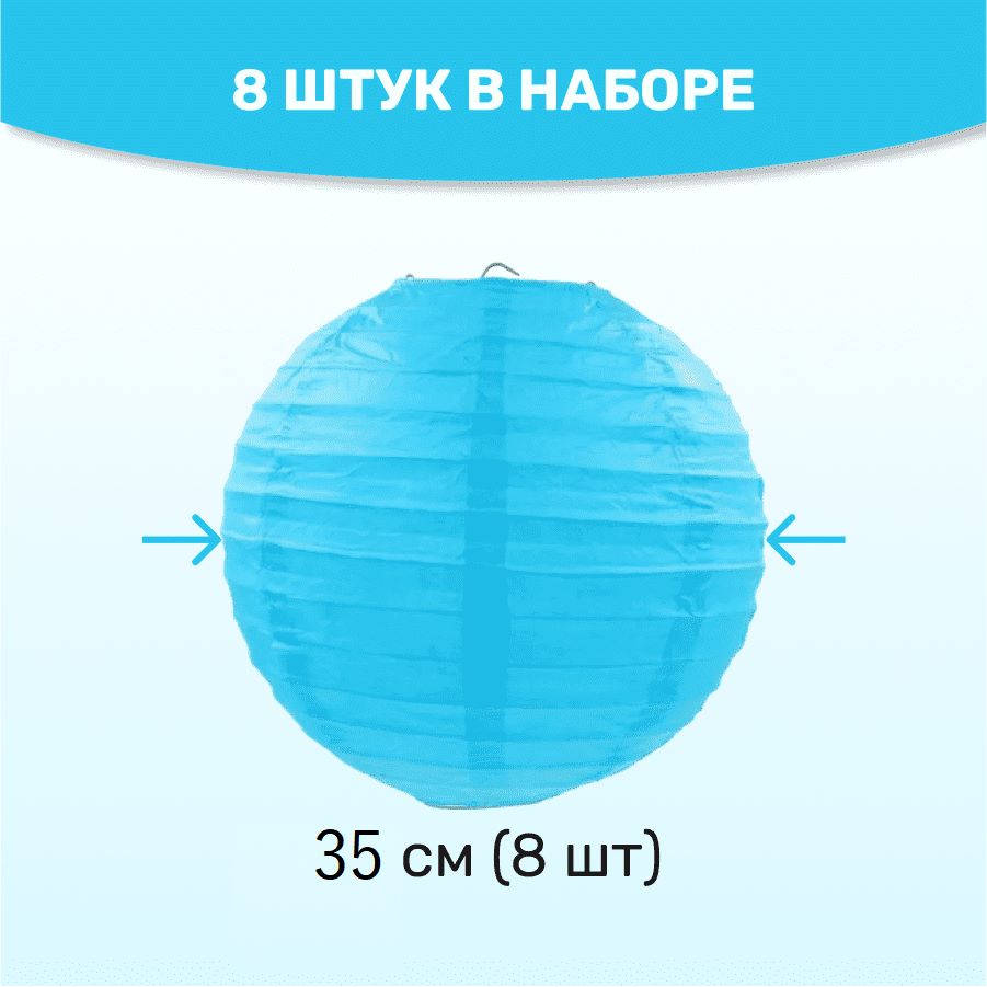 В комплект входит 8 бумажных фонариков и лента атласная.