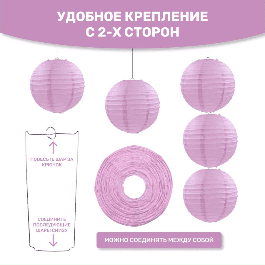 В комплект входит 8 бумажных фонариков и лента атласная.
