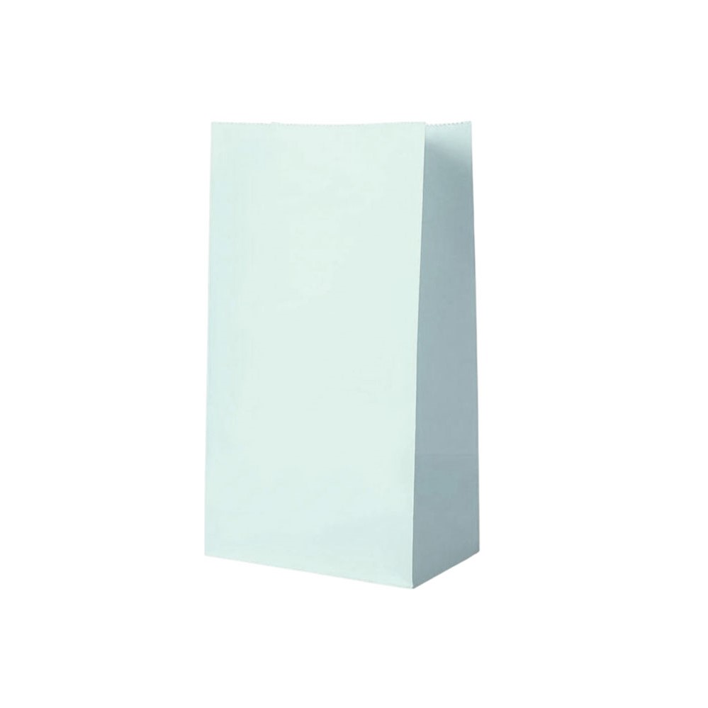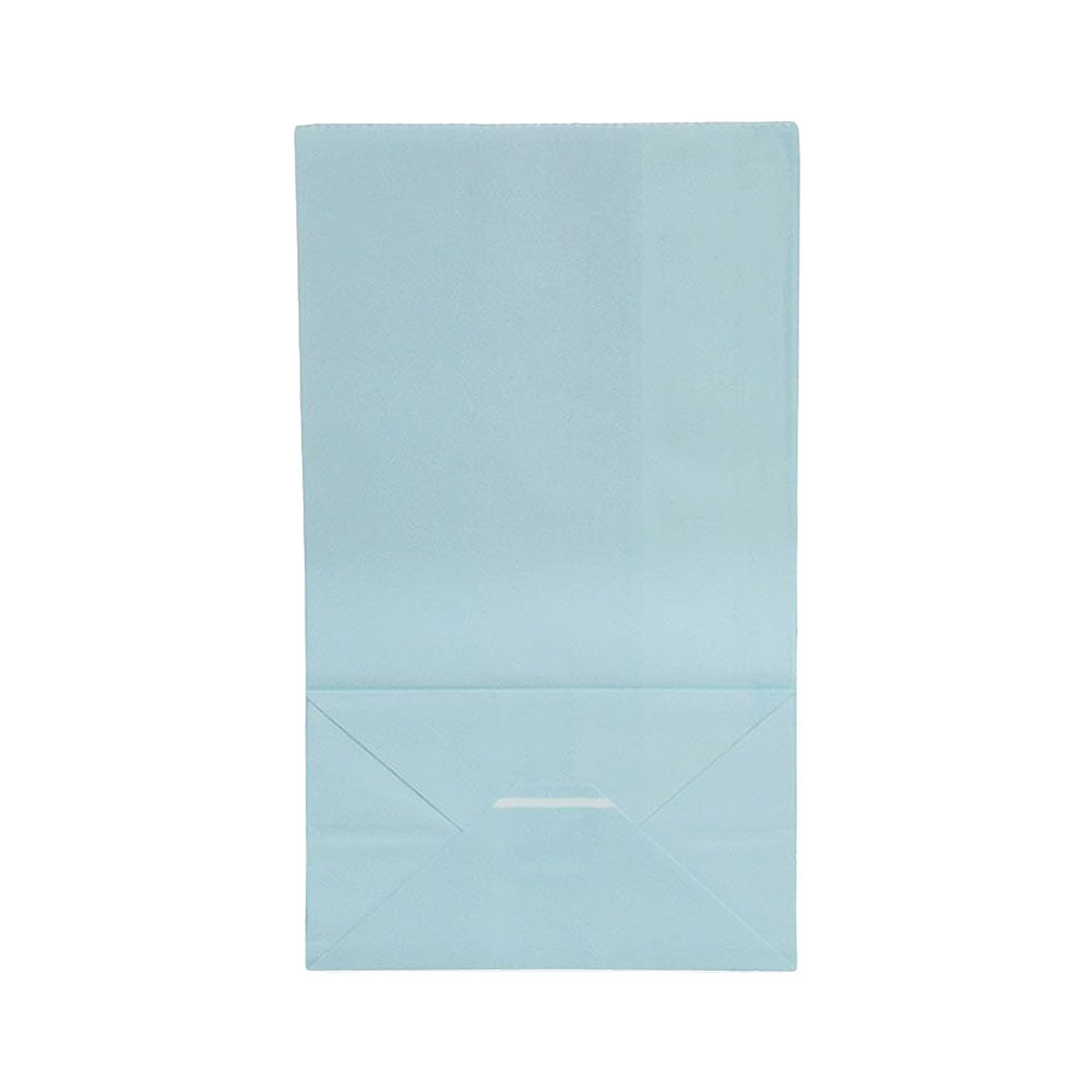 Подарочный пакет из крафтовой бумаги пастельного оттенка с белыми бумажными ручками и белой внутренней стороной.