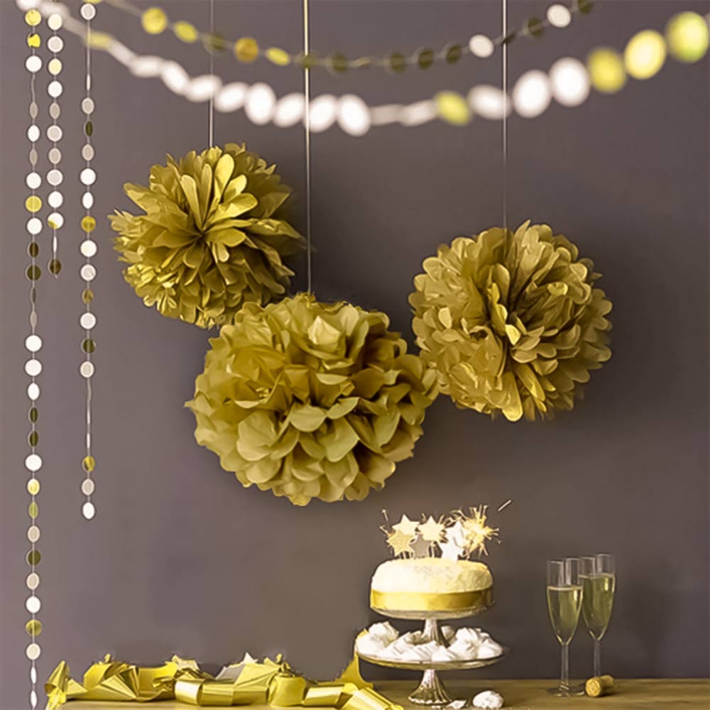 Золотой бумажный помпон диаметром 40 см — стильное и лёгкое украшение для праздников, фотозон, витрин и интерьера. Отлично подойдёт для дней рождений, свадеб, вечеринок и тематических мероприятий.