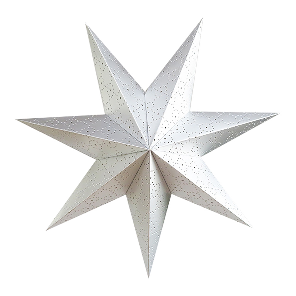 Семиконечная объемная звезда 45 см — великолепный декор из тонкого перфорированного картона. Создает красивые световые эффекты. Поставляется в сложенном виде, в комплекте шнур для фиксации объема и подвеса.